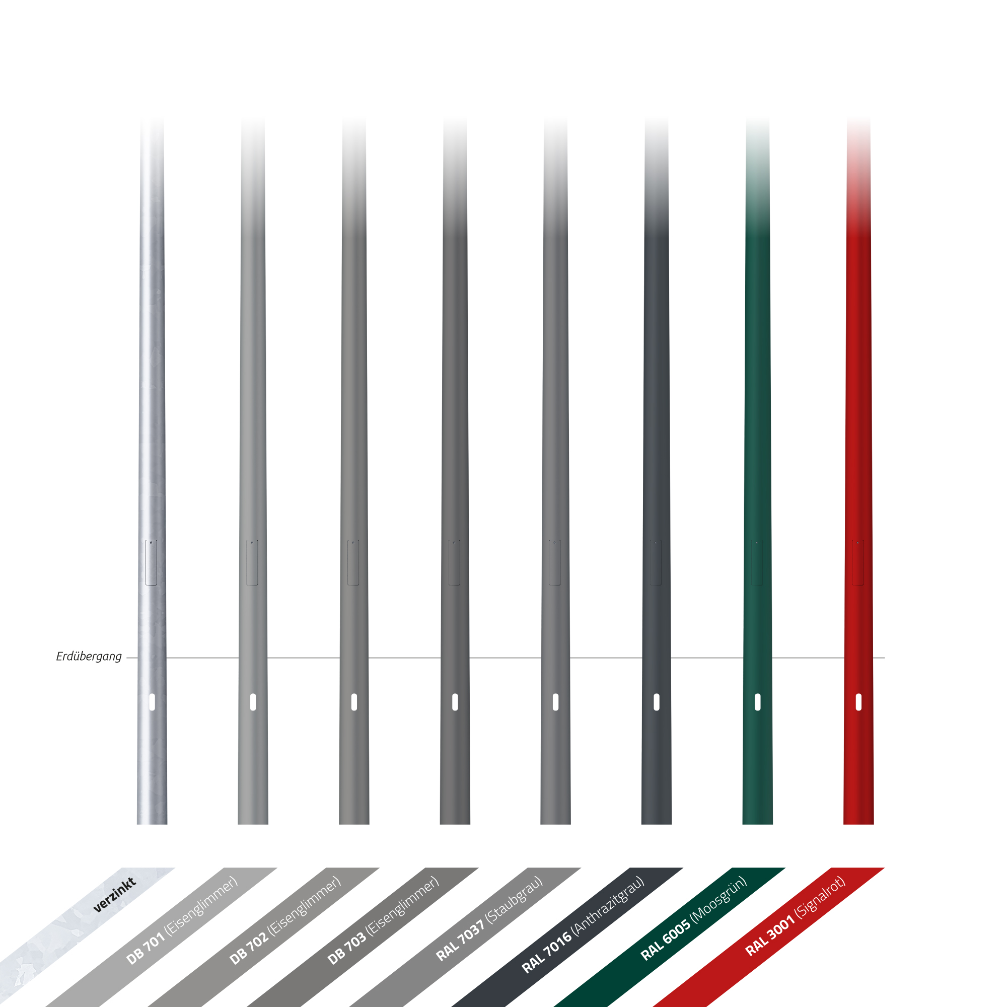 Seine verzinkte Oberfläche kann optional pulverbeschichtet in einer individuellen RAL-Farbe sowie DB Eisenglimmer gefertigt werden.