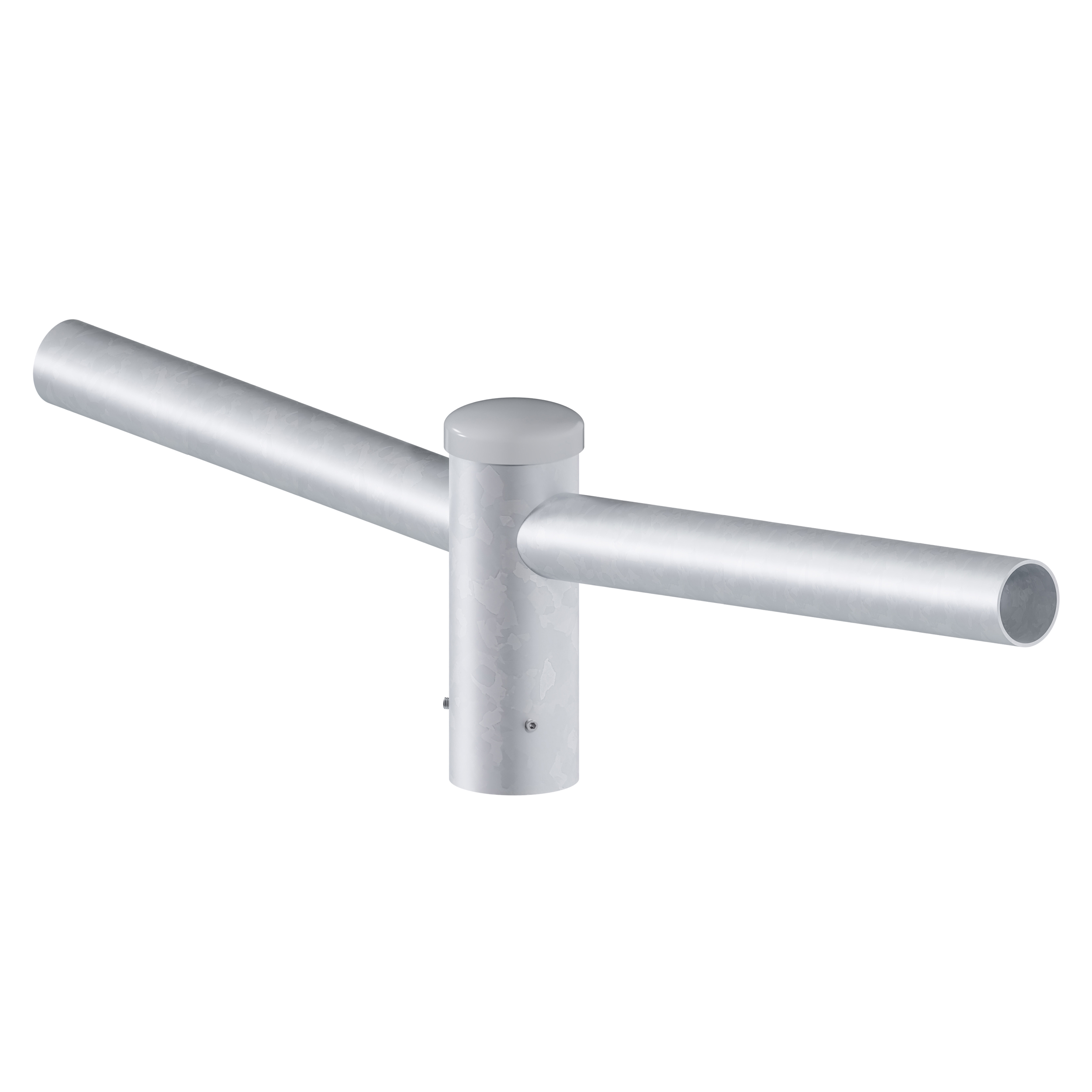 Dieser stabile und solide verarbeitete Laternenmast Doppel-Ausleger 500 mm (2-fach Mastausleger) stellt eine sehr häufig verwendete Variante der Nutzung von Lichtmasten dar. Er ermöglicht die Montage von zwei Mastleuchten auf einem Lampenmast und somit die Installation des Lichtpunktes zwischen zwei Straßen oder auch als doppelte Ausleuchtungsmöglichkeit auf dem Parkplatz oder Verladeplatz.