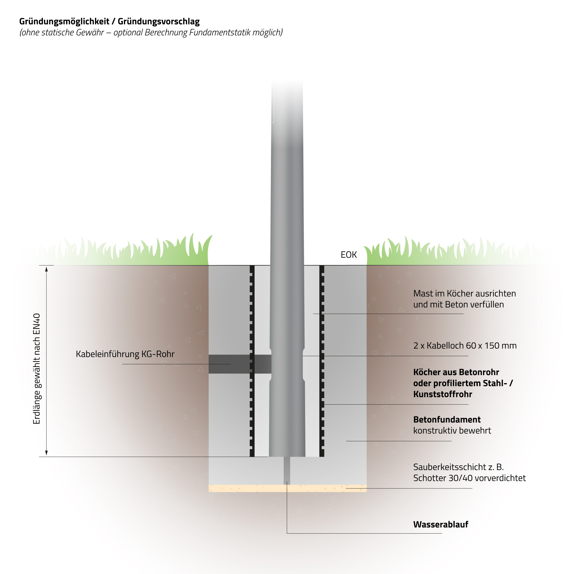 - 2x Kabelloch: 60 x 150 mm (UKT = 500 mm unter Erde)