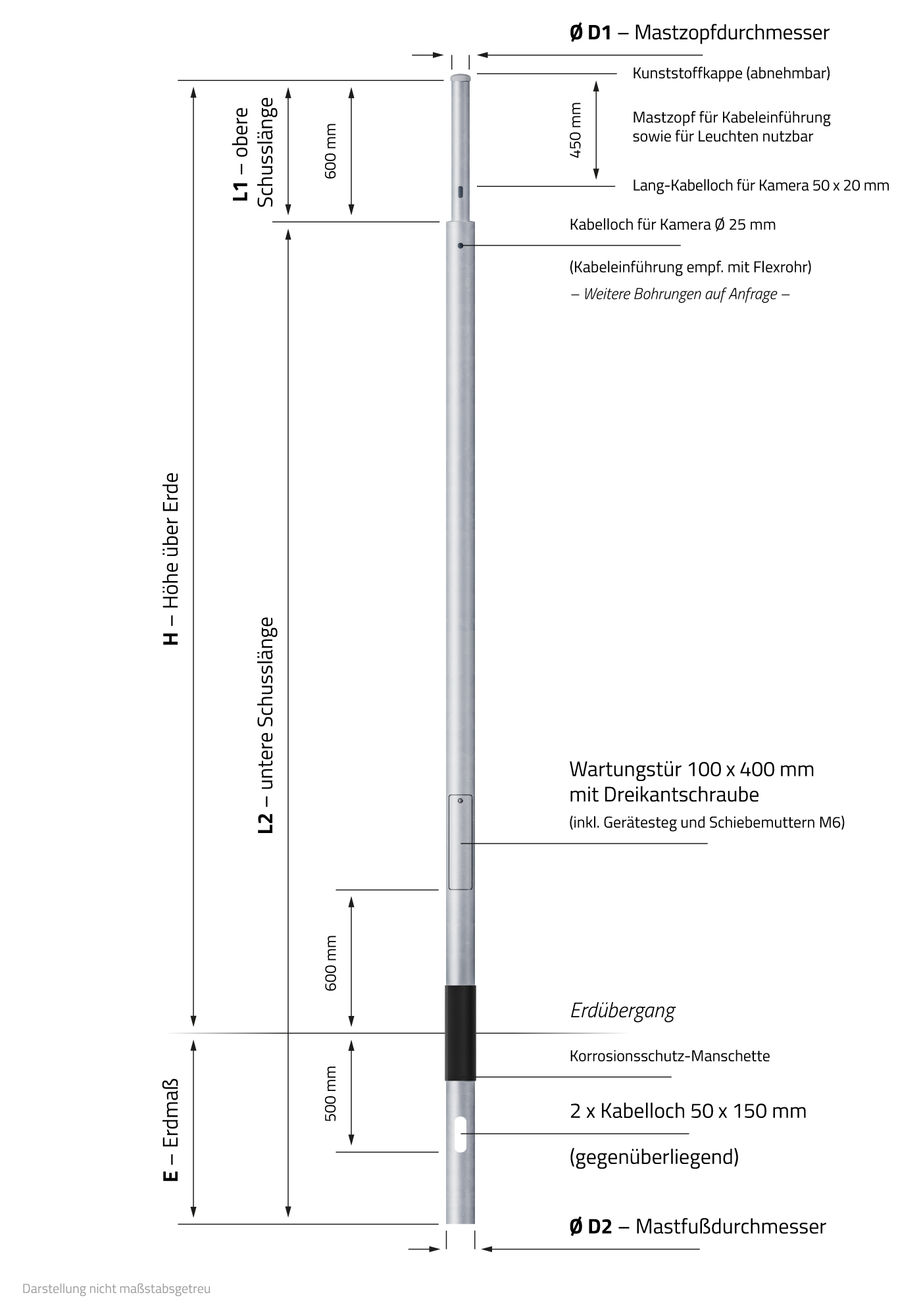 (Kabeleinführung empf. mit Flexrohr) - Mastfußdurchmesser (D2): 193 mm
