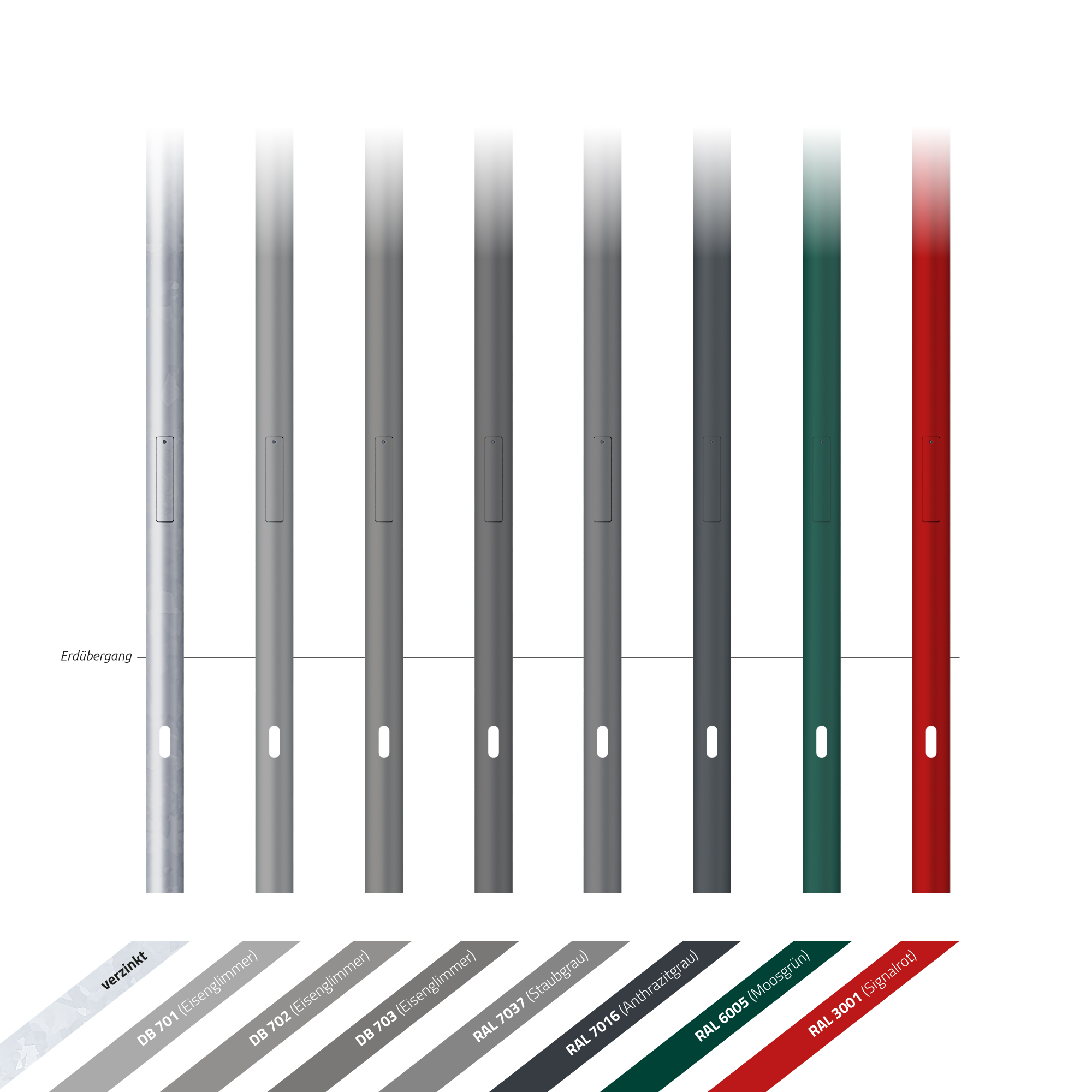 sowie in Eisenglimmer DB 701, DB 702, DB 703 oder DB 704 lieferbar - optional mit Kabelübergangskasten etc.