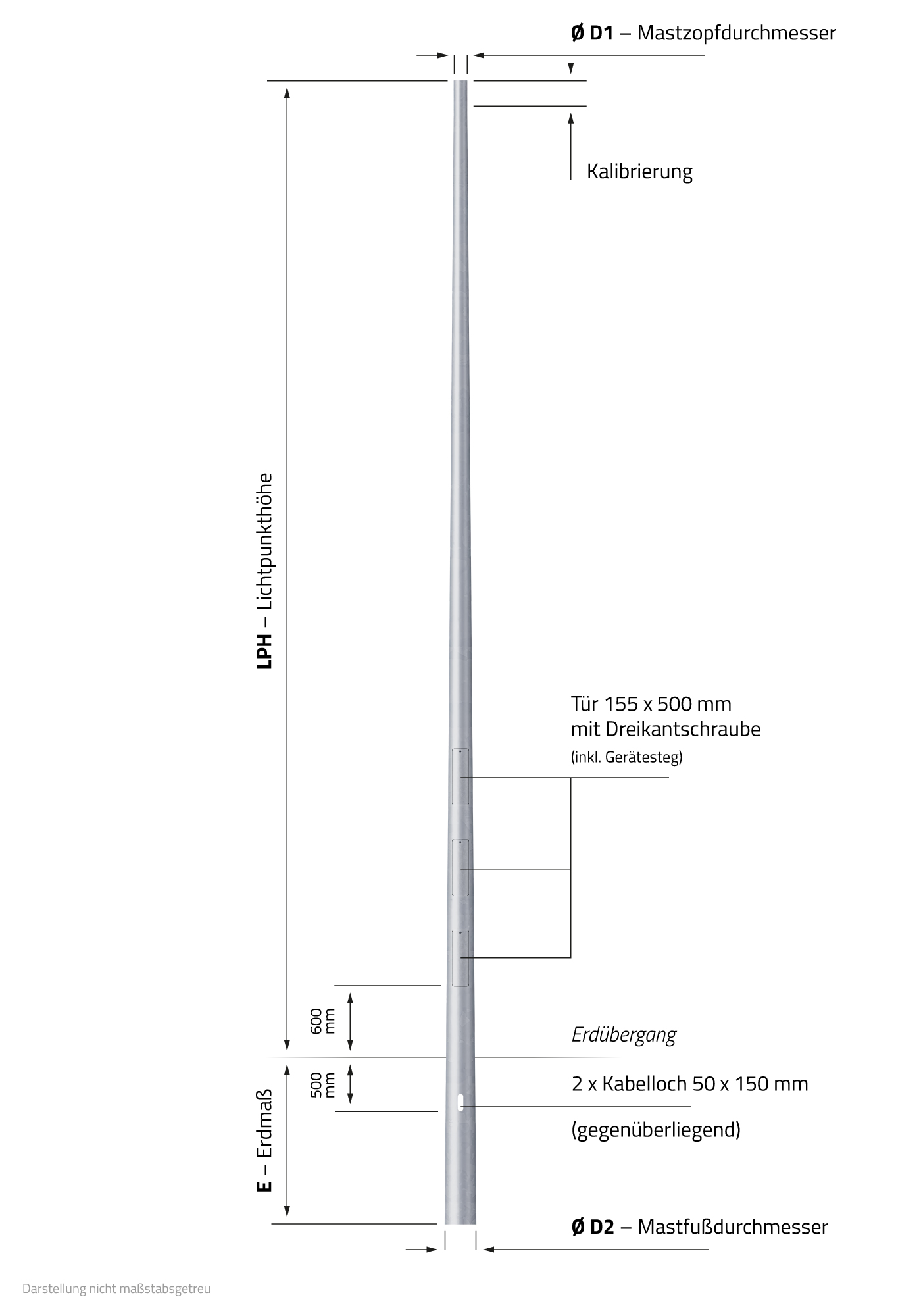 - Mastfußdurchmesser (D2): 308 mm