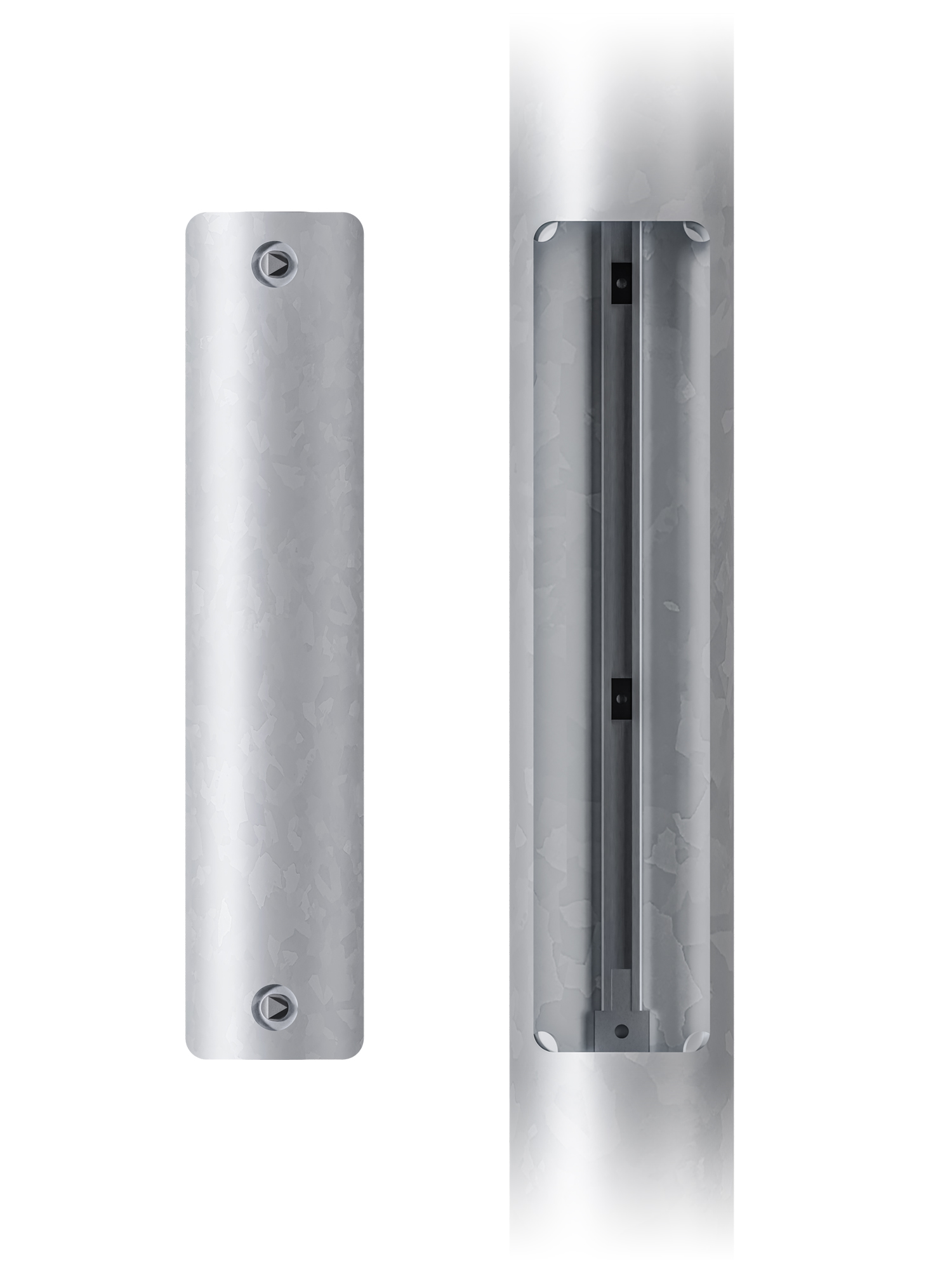 Unsere hochwertige und robuste Ersatztür für Lichtmasten und Leuchtenmasten besitzt ein Verschlussband an ihrer Rückseite, welches nach Aufsetzen der Wartungstür die Verriegelung derselben herstellt. Somit sitzt diese neue Laternenmast-Tür fest und sicher. Unsere Lichtmast-Tür dient somit als Ersatz für nahezu alle handelsüblichen zylindrischen und konischen Lampenmasten, mit den Tür-Maßen 85 x 400 mm. Gern liefern wir Ihnen unsere Ersatztür in den Maßen 85 x 300 mm, 100 x 300 mm sowie auch gern in 100 x 400 mm.