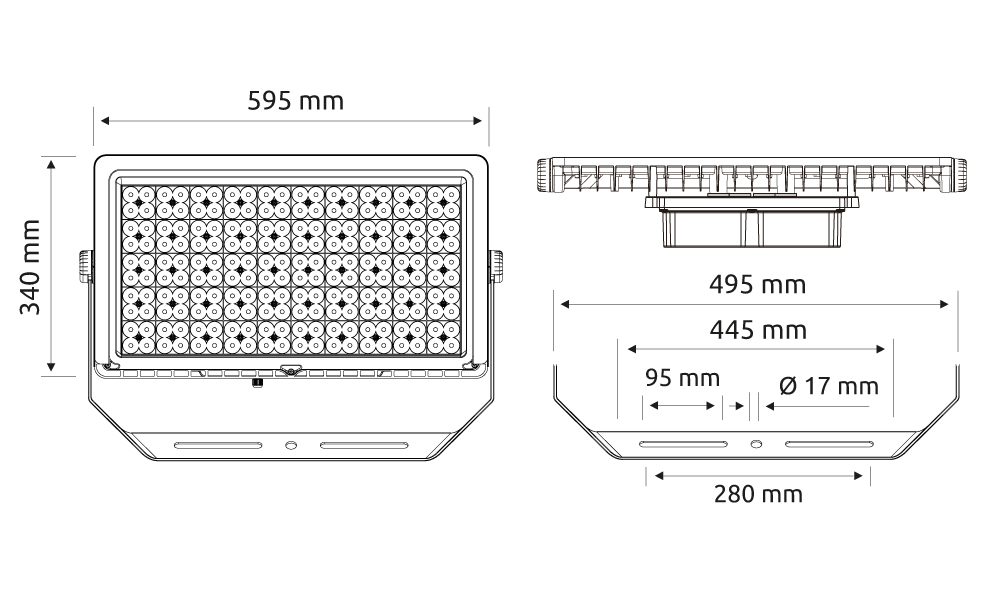 Ein weiterer Vorteil des 500 W LED Flutlicht Strahlers RME-500 PRO M2 ist seine sehr hohe Bemessungslebensdauer von 100.000 Stunden. Dieser, für LED Flutlichtanlagen untypisch hohe Wert, resultiert aus dem sinnvoll und auf Langlebigkeit konzipierten Verhältnis aus Leistungsaufnahme und erzeugten Lumen je einzelner LED. Anders als herkömmliche LED Flutlicht Strahler im "günstigeren" Preis-Sektor, besitzt der RME-500 PRO M2 eine Lichteffizienz von 160 Lumen je Watt der aufgenommenen Leistung.